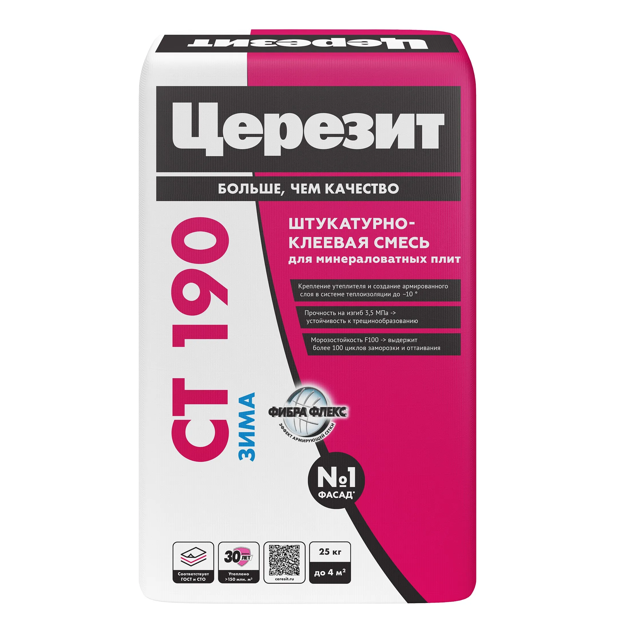 Штукатурно-клеевая смесь Ceresit СТ 190 для МВ плит Зима 25 кг