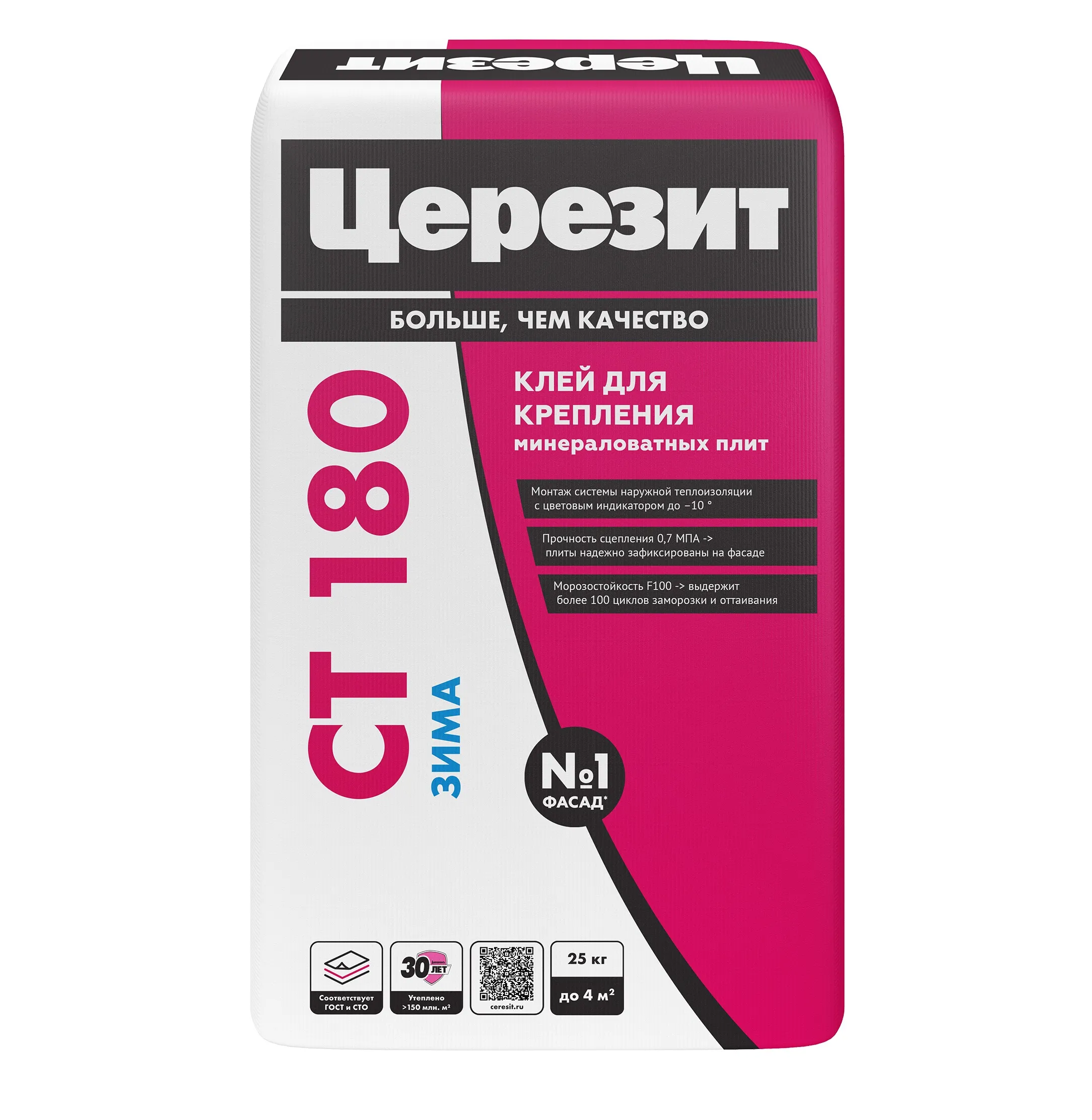 Клей Ceresit СТ 180 для крепления минераловатных плит Зима 25 кг
