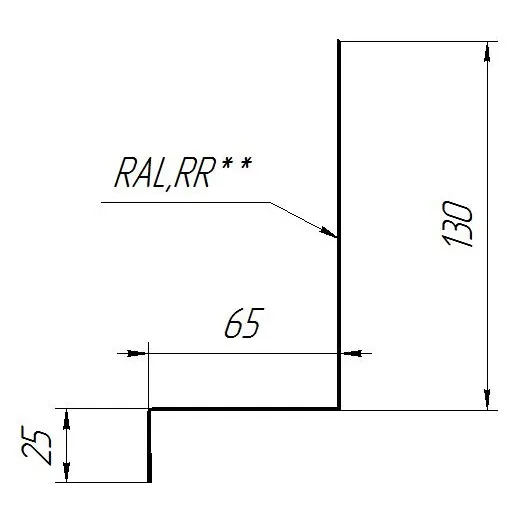 Примыкание верхнее к стене планка фальц Grand Line 0,5 мм PurPro Matt 275 RAL 9005 Черный 150х130х20
