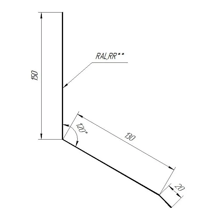 Примыкание верхнее к стене планка фальц Grand Line 0,5 мм PurPro с пленкой RAL 7024 Серый 150х130х20