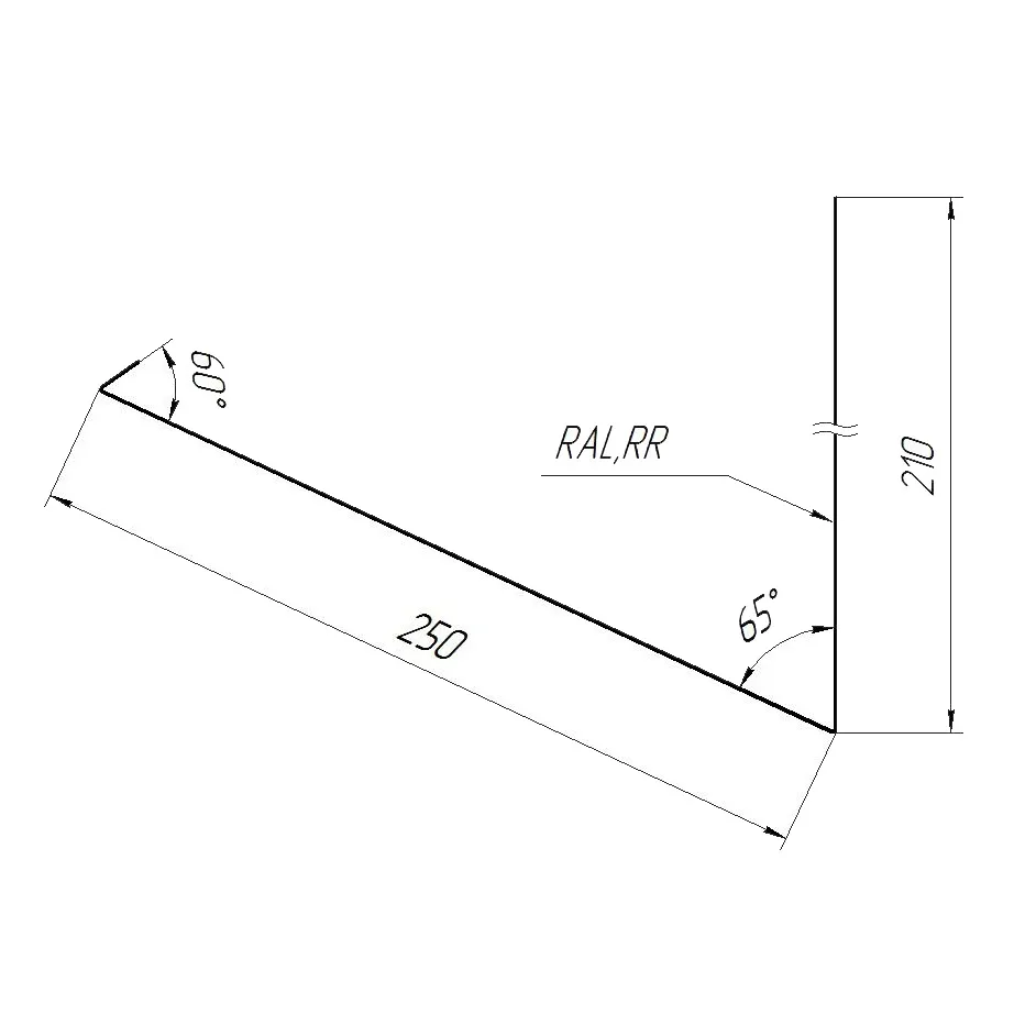 Примыкание верхнее к стене планка фальц Grand Line 0,5 мм PurPro Matt 275 RAL 7024 Серый 150х130х200