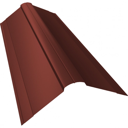 Планка конька фигурного с пленкой Grand line 0,5 мм Satin 150х150х2000 мм RAL 3009 оксидно-красный