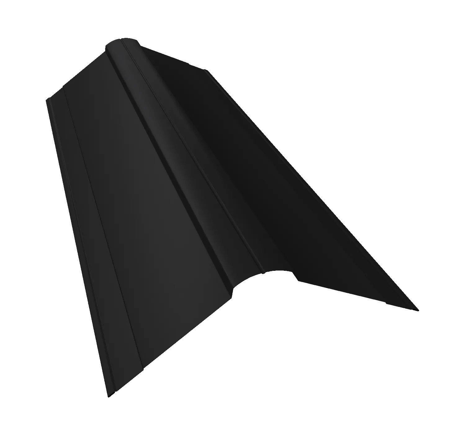Планка конька фигурного Grand line PurPro 0,5 мм с пленкой 150х150х2000 мм RAL 9005 черный
