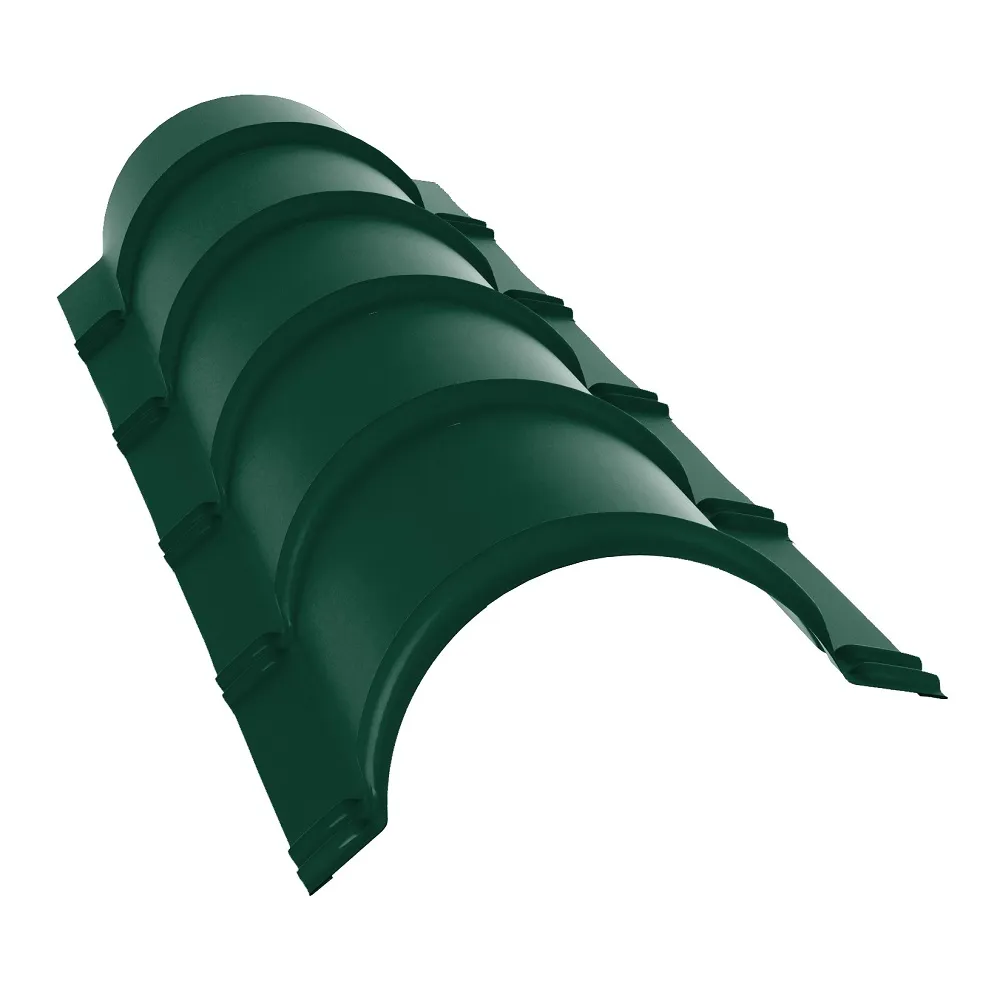 Конька полукруглого планка Grand Line 0,45 мм PE с пленкой RAL 6005 Зеленый 301х1970 мм