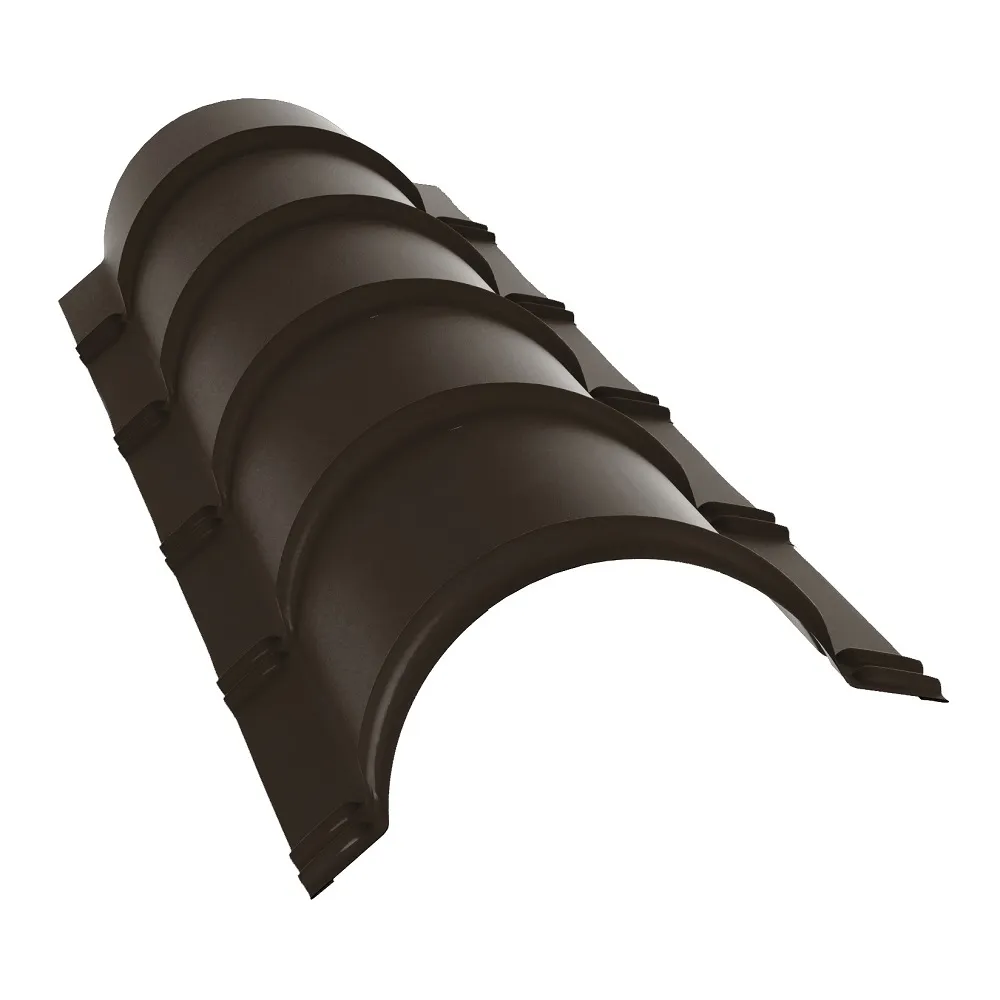 Конька полукруглого планка Grand Line 0,45 мм PE с пленкой RAL 8004 Коричневый 301х1970 мм