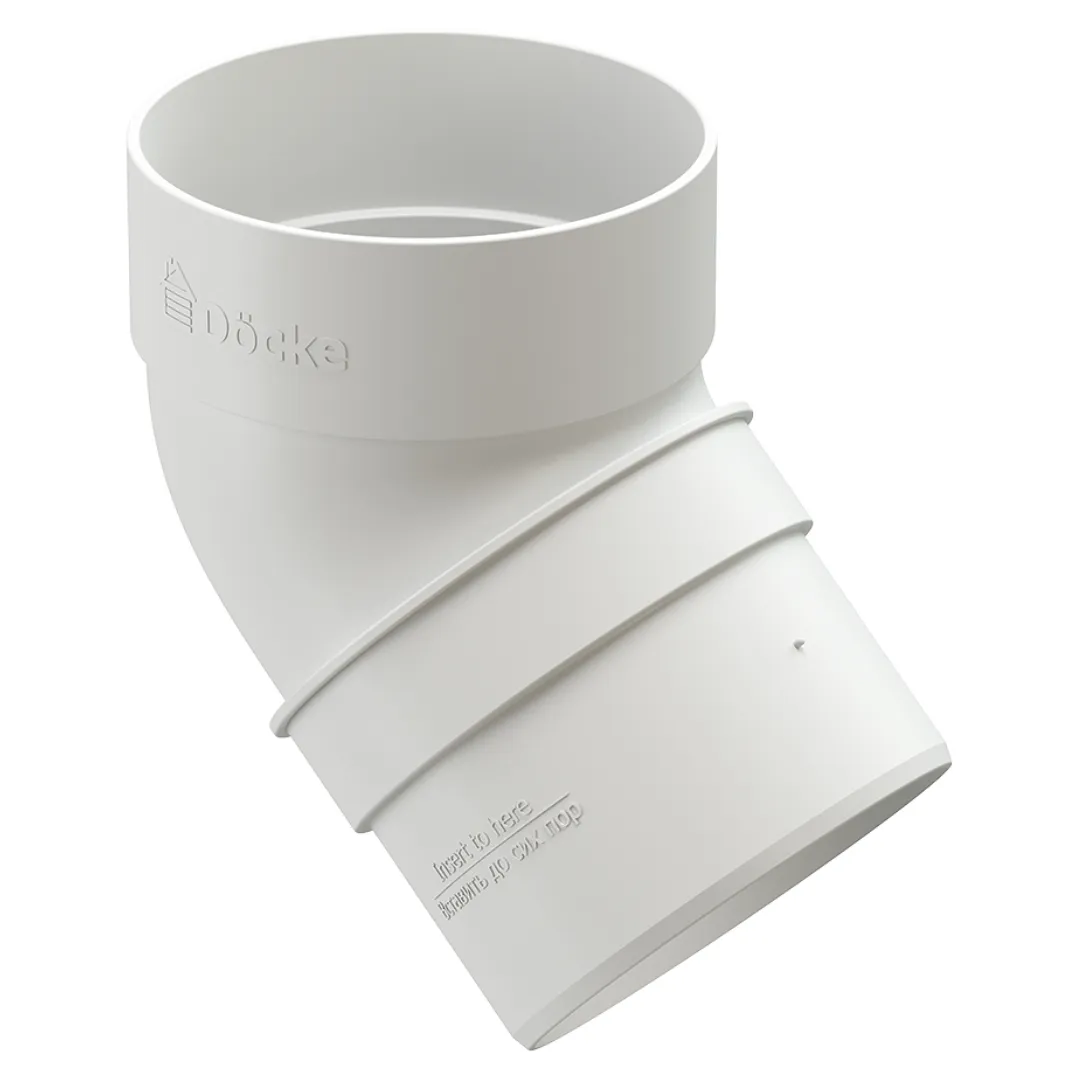 Колено трубы Docke используется для осуществления перехода от трубы к воронке, правильного обхода архитектурных элементов фасадов зданий. Оно используется вместе с комплексными водостоками Дёке. Эти системы устанавливают на объектах с кровлей значительной площади. Система разрабатывалась немецкими инженерами с применением передового мирового опыта. Она соединяет инновационные дизайнерские, инженерные достижения.