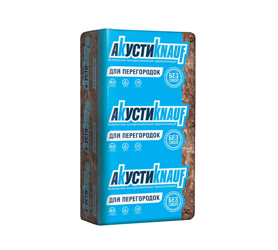 Акусти KNAUF Звукоизоляция 50 мм, 610х1230 (уп.16шт./ 0,6м3/ 12 м2/ пал.36шт.)