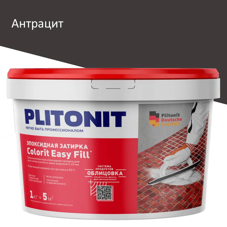 Затирка эпоксидная для межплиточных швов и реактивный клей PLITONIT Colorit EasyFill антрацит 1кг